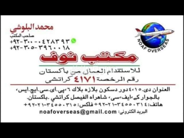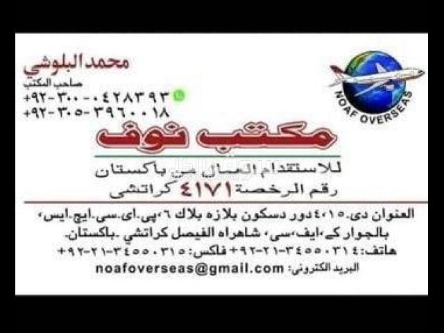 يسرنا تقديم عرضنا المميز لتوفير العمالة من دولة باكستان نحن بعون الله نقوم بتخليص جميع الاجراءات المطلوبه