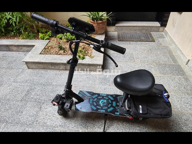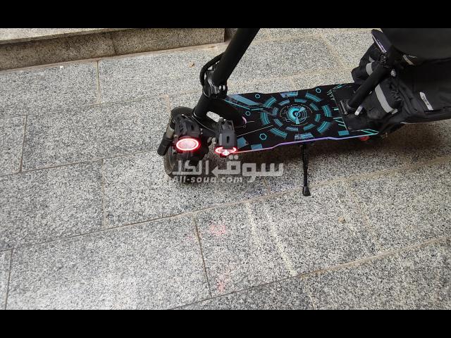 سكوتر كهربائي سرعه40 جديد فيه هرن (بوري) فيه خدوش بسيطه ما تبين فيه انوار RGB واشارات يمين ويسار له اسبوع معاي السكوتر مشى 2 كيلو متر بس بمفاتيح فيه كرسي